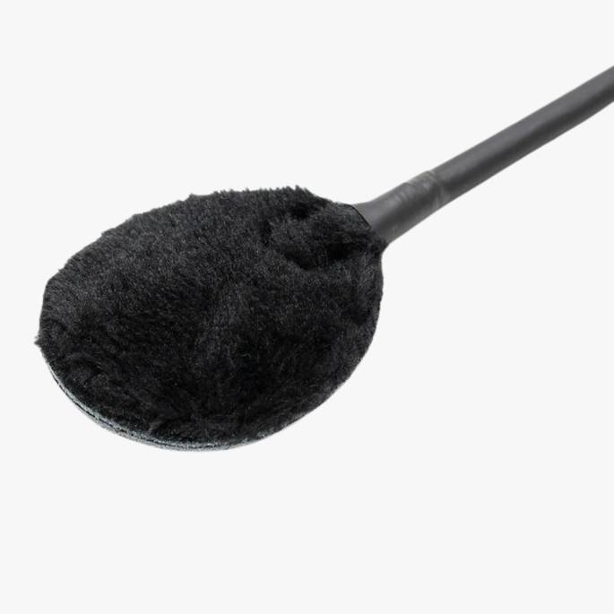 Rounded double-sided wick. A leather part for strong sensations, a fur part for soft sensations.