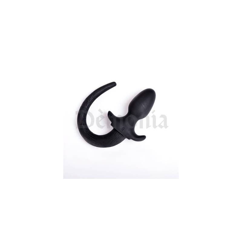 Black silicone "doggie tail" plug with an ergonomic curved base that will perfectly fit your anatomy and ensure a perfect fit of the plug.
