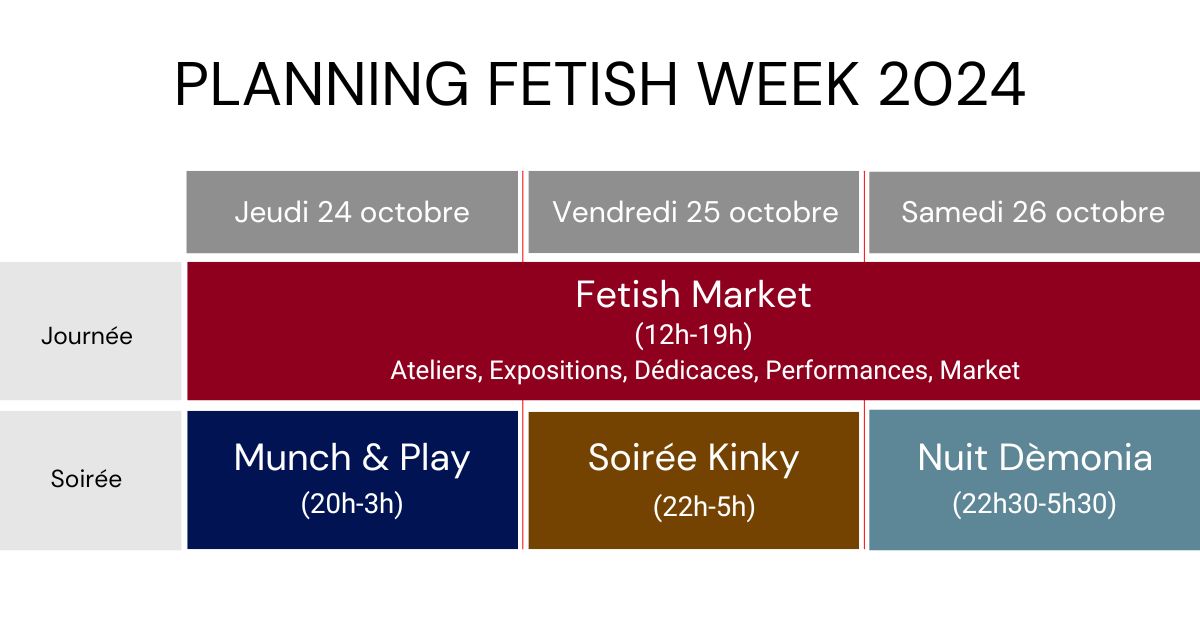 The Nuit Dèmonia will be the finale of this week dedicated to the world of fetish. Come and experience an unforgettable evening, and close this week in style.