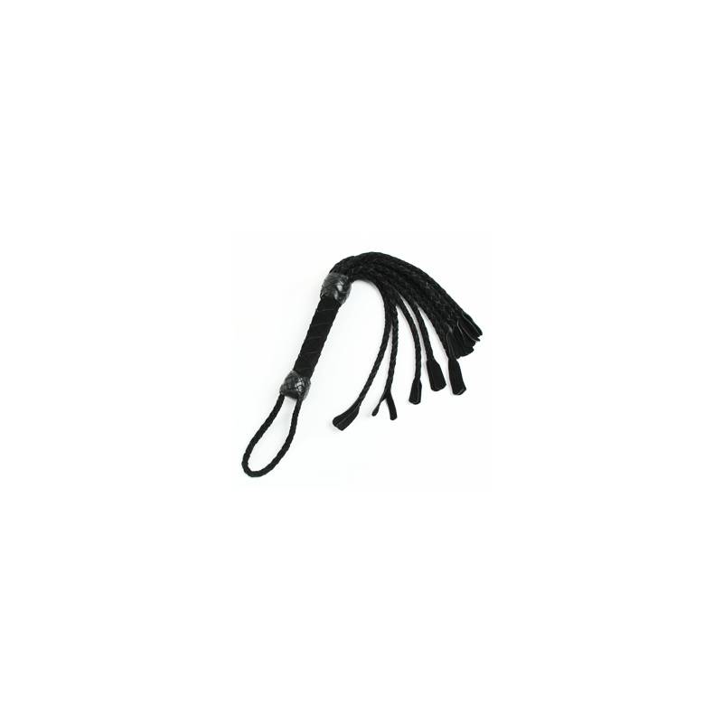 This very nice Cat O Nine is a black suede swift made of nine braided suede straps. The handle, also in suede is 18cm long and ends with a strap.