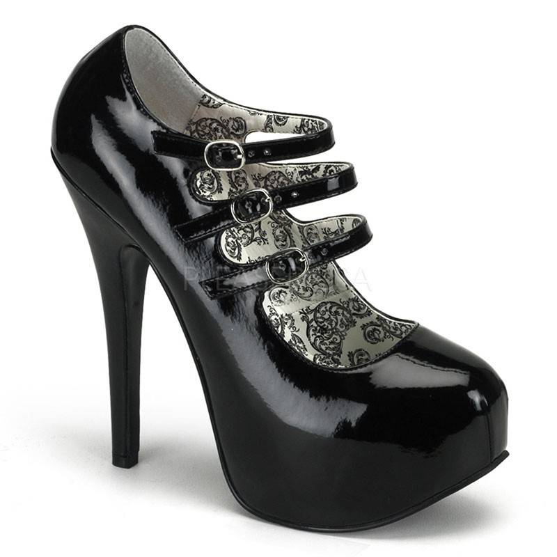 Patent "Bordello" platform pumps with 3 thin straps also patent with buckle