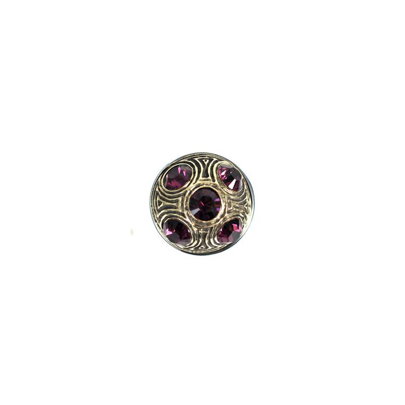 is adorned with purple rhinestones.