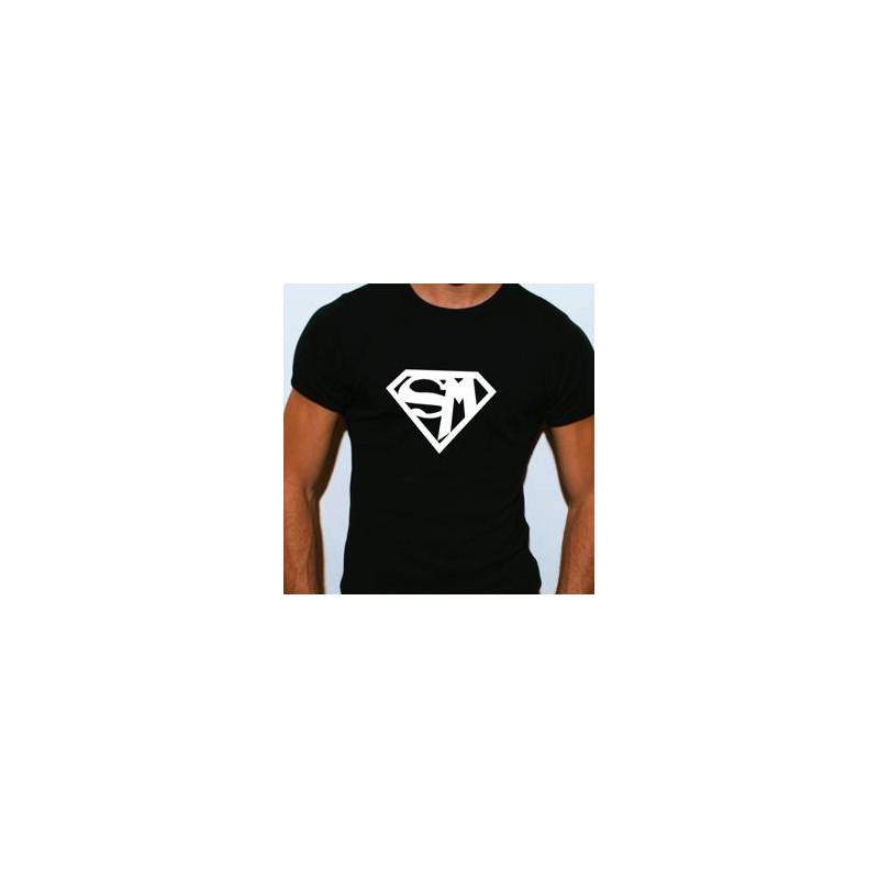 TEE-SHIRT "SM" En coton noir Tee-shirt mixte avec motif blanc. Tee-shirt de très belle qualité. Ne bouge pas au lavage Ne craint pas le repassage (même sur le motif).