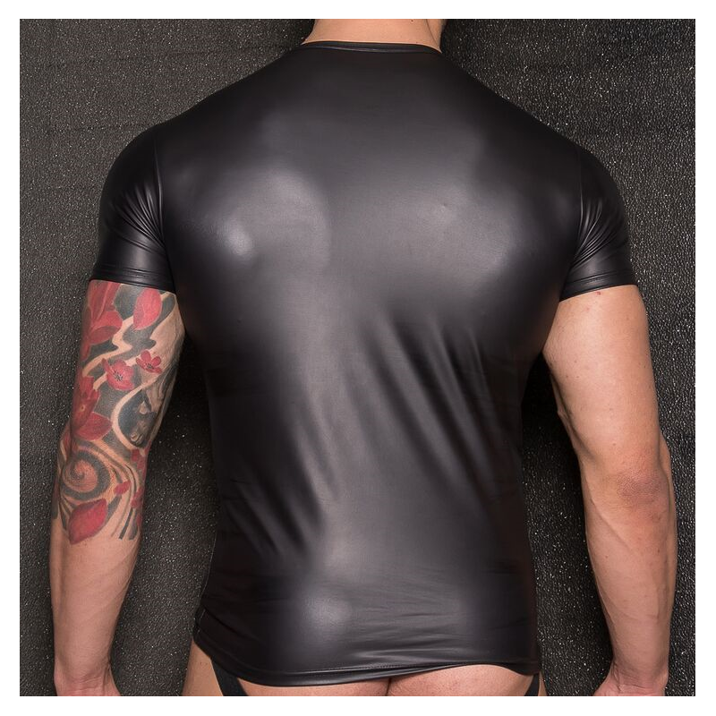 Black tee shirt in good quality wetlook made in Italy, comfortable and slightly stretchy.