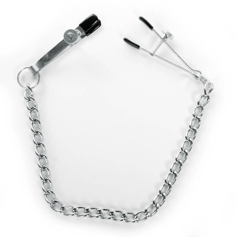 Un accesorio imprescindible para los amantes del sadomasoquismo.Tipo: Pinzas ajustables con cadena Características: Puntas anchas para una comodidad y sujeción óptimas Material: Acero inoxidable y plástico de alta calidad Dimensiones: Longitud total de la cadena: 40 cm