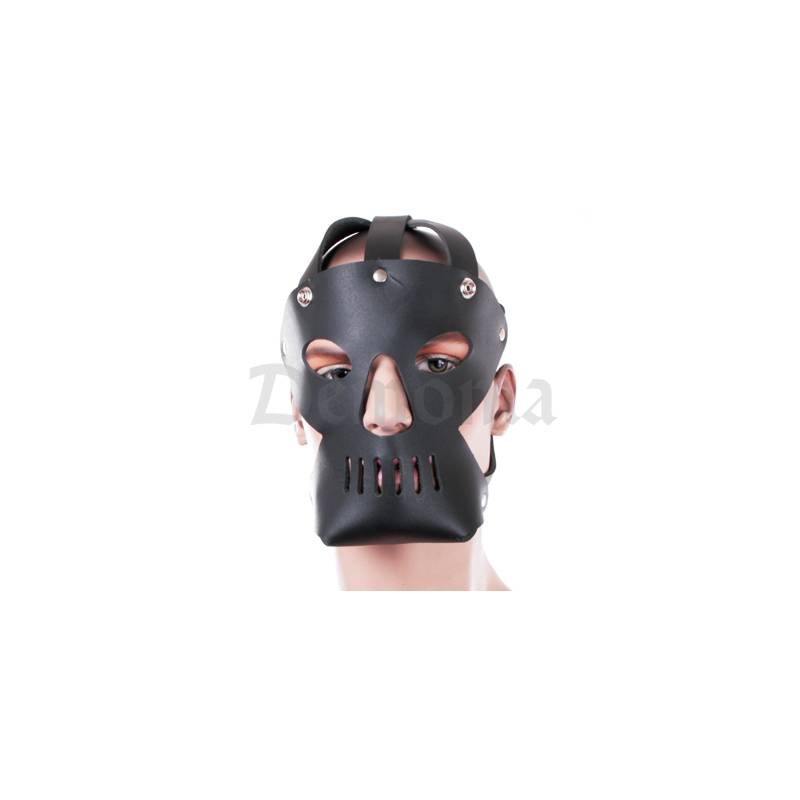 Arnés de cabeza de cuero estilo calavera con venda extraíble que se sujeta con 2 botones de presión.