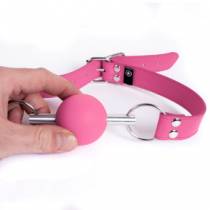 Suave mordaza de bola de silicona rosa con correas ajustables. Cómoda y elegante, perfecta para cautivadoras sesiones BDSM que combinan sumisión y fantasía.