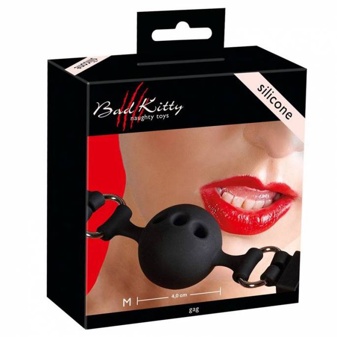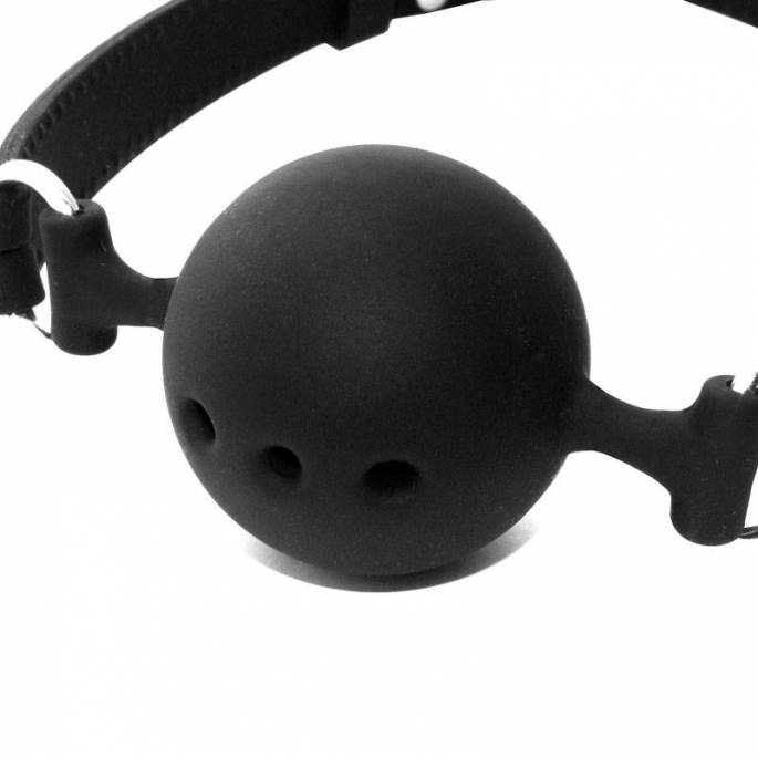 Mordaza de bola totalmente de silicona con hebilla metálica.