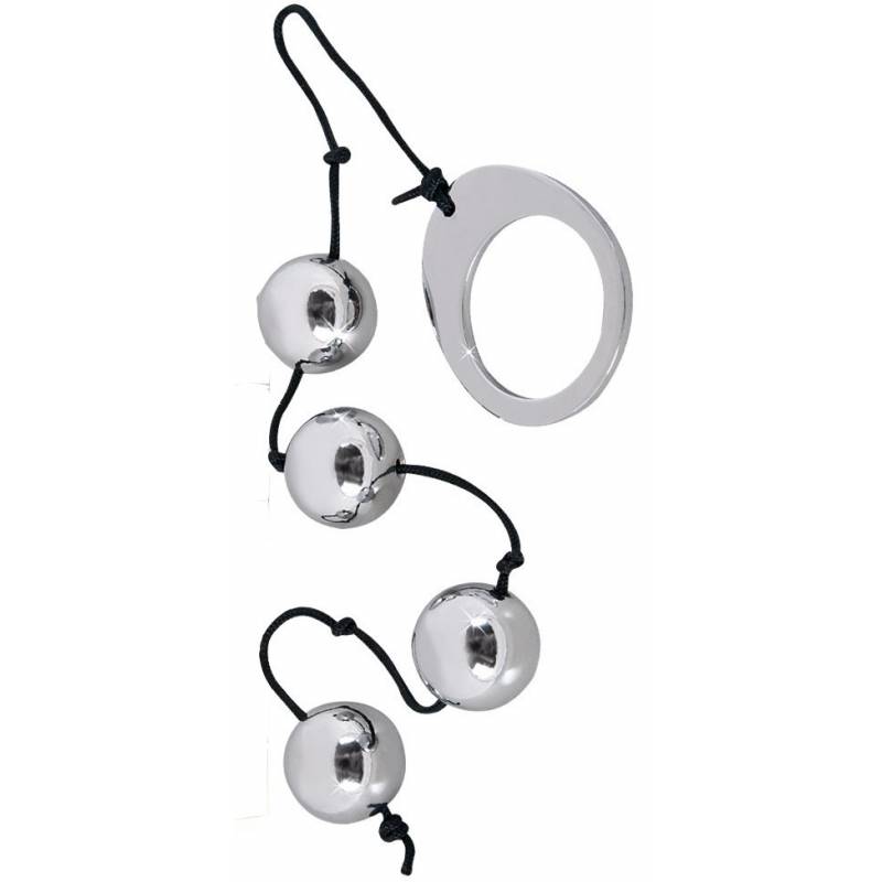 Bolas de geisha con 4 bolas de metal cromado, unidas por un cordón con anilla de metal.