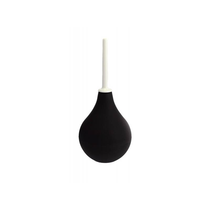 Pera de lava de muy buena calidad, fabricada en látex negro y plástico blanco.