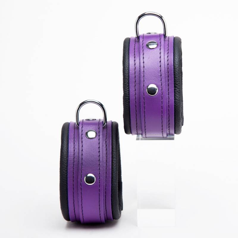 Botines de piel negra y morada de alta calidad con tiras remachadas y anilla metálica, de lacolección DEMONIA.
