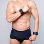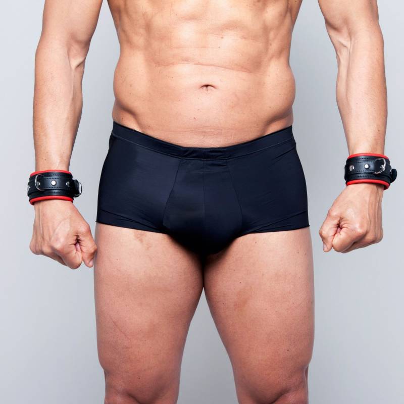 Añade un toque de estilo y firmeza a tus juegos BDSM con estas esposas SM de cuero negro y rojo. Diseñadas para ser a la vez estéticas y resistentes, son ideales para inmovilizar a tu pareja con total control, al tiempo que garantizan un confort óptimo.