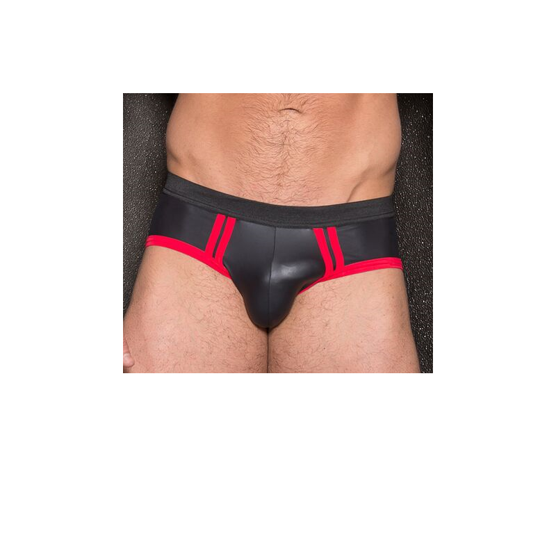 BOXER FESSES NUES WETLOOK BANDES ROUGES.