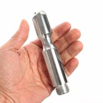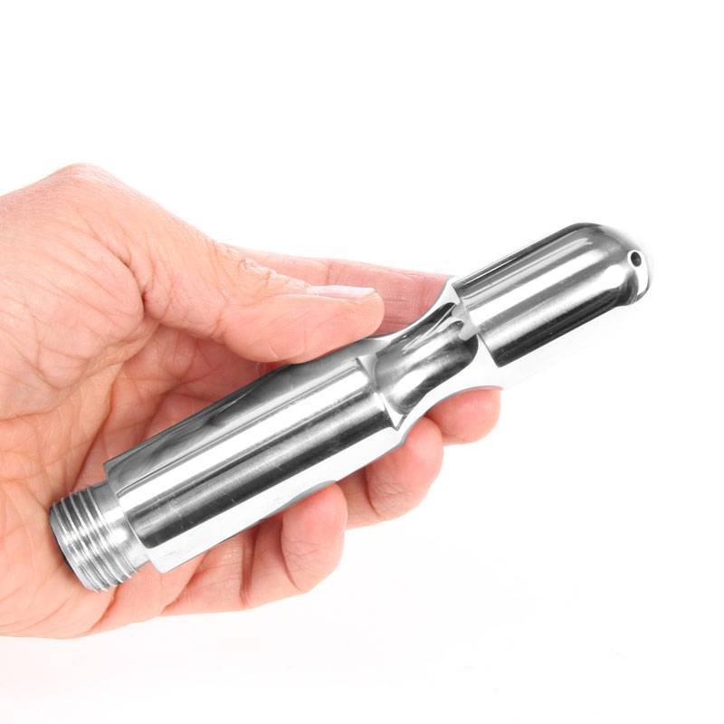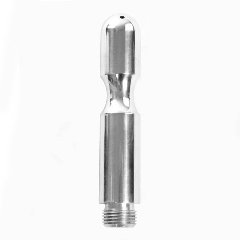 Douchette à lavement de forme cylindrique légèrement incurvée vers l'extrémité ce qui permettra un bon maintien une fois en place. A l'extrémité de la douchette, 5 trous pour laisser passer l'eau et un pas de vis à la base de la douchette pour l'adapter sur un tuyau de douche.