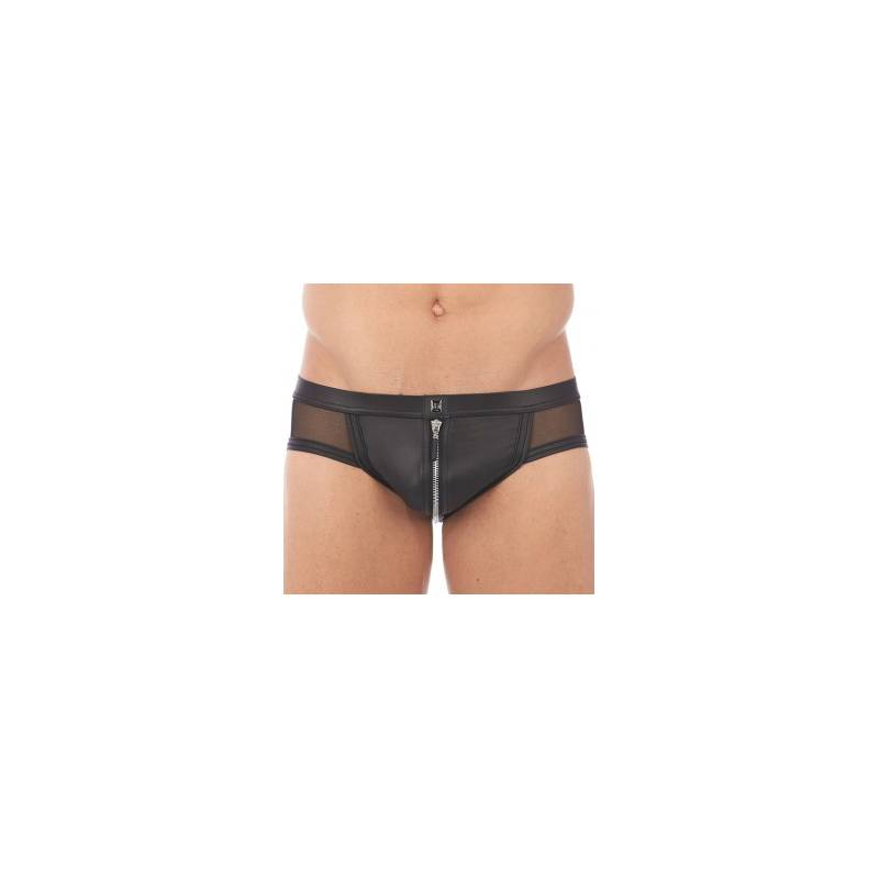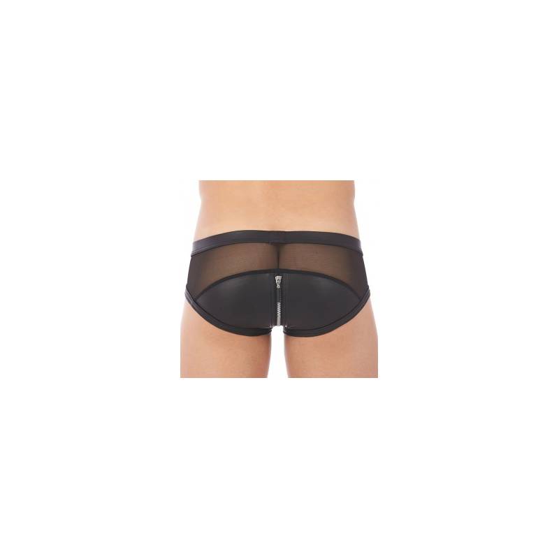 Slip "Reckless" de GREGG Homme, confeccionado en una mezcla de lycra lacada y voile transparente.