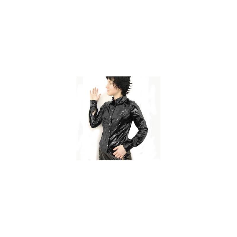 Blusa con cuello, se cierra con 8 automáticos, el bajo de las mangas también se cierra con automáticos.
