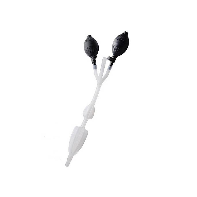 La 1ª parte hinchable (que estará totalmente introducida en el ano) se utilizará para dar placer a su pareja durante este enema. Puede inflarla y desinflarla como desee.