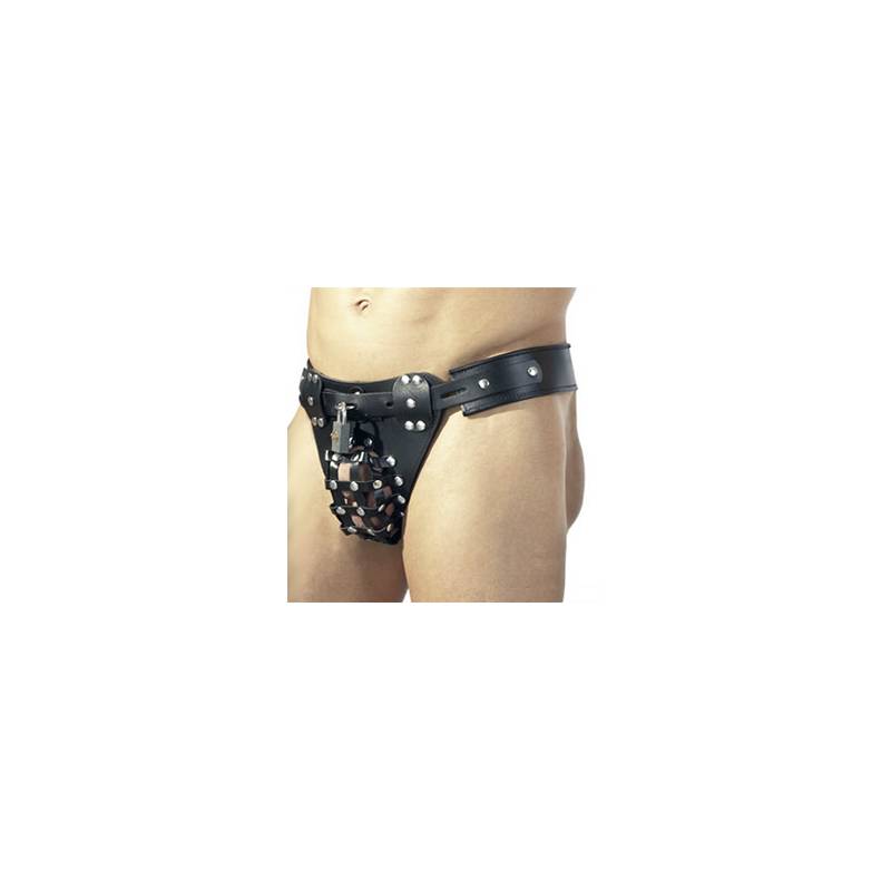 Este cinturón consta de una parte delantera con un orificio para el pene, una jaula formada por varias correas pequeñas de cuero remachadas entre sí, un cinturón ancho, ajustable y que se puede cerrar con candado, con una protección de neopreno en el interior, y una correa entre las piernas.