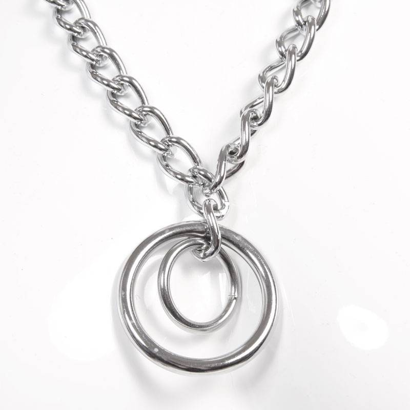 Collar cadena de metal con 2 anillos en colgante, malla grande.