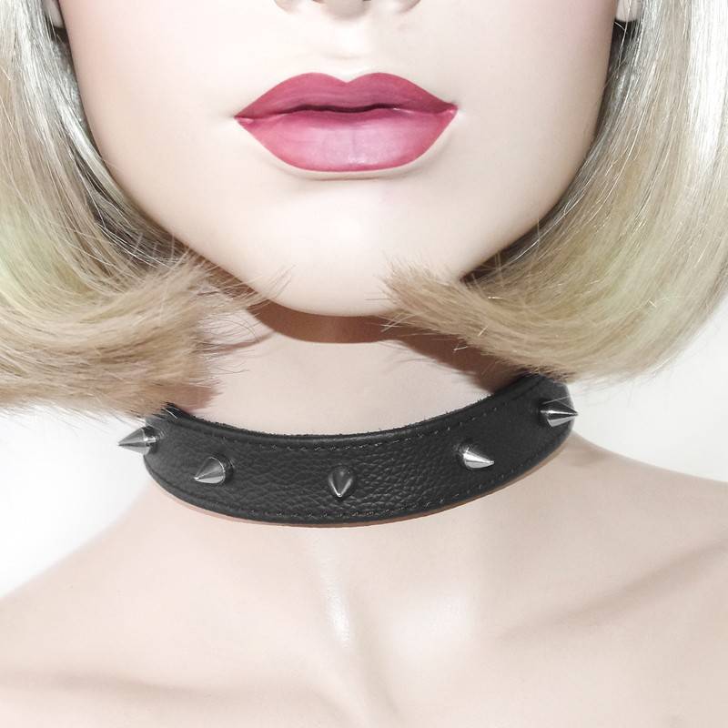 COLLAR DE CUERO FINO CON TACHUELAS
