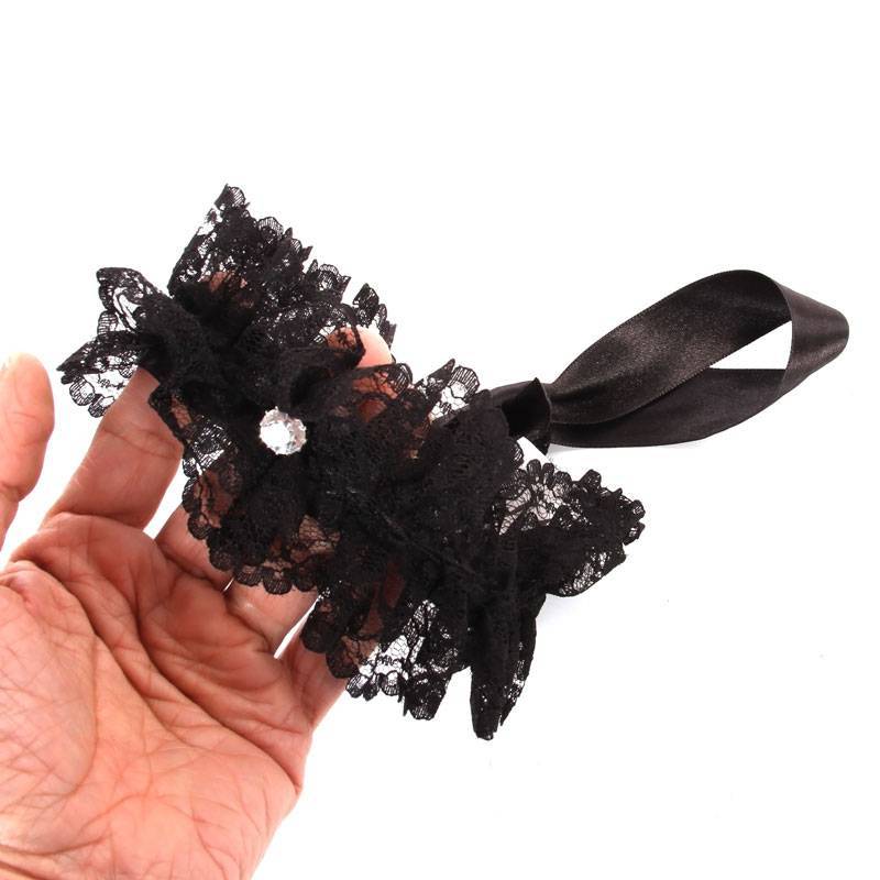 Collar de encaje de talla única con una cinta de raso y una piedra de Swarovski.