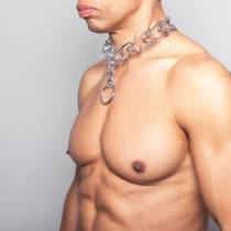 el collar estrangulador se cierra con un cierre de clip para el cinturón, también de metal.