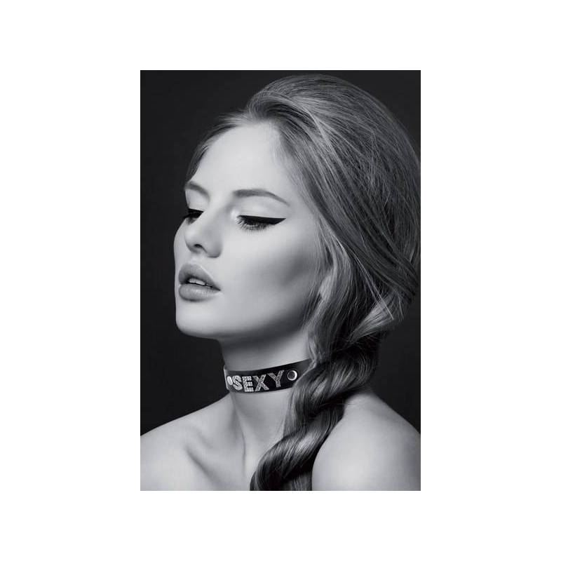 Bonito collar SM de cuero negro. Ajustable mediante botón a presión.