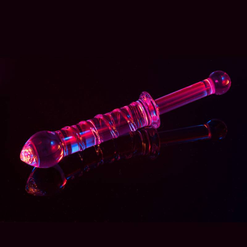 Otra ventaja de este consolador de vidrio, su extremo ensanchado, así como las estrías a lo largo de su longitud para la estimulación de las paredes vag inales durante el movimiento de vaivén.