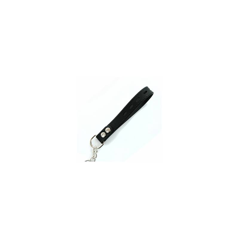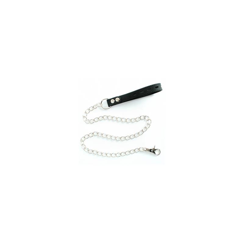 Una correa original con un mango de silicona suave y resistente y eslabones de metal macizo que forman una cadena con un mosquetón en el extremo.