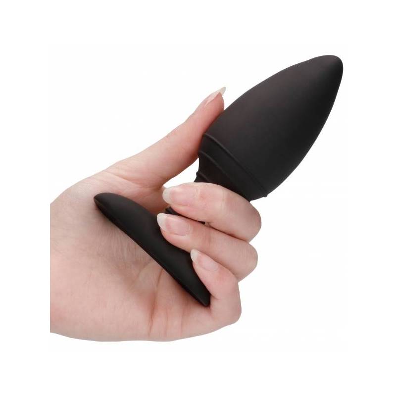 Plug anal vibrador de silicona negra, ¡calentable y recargable!
