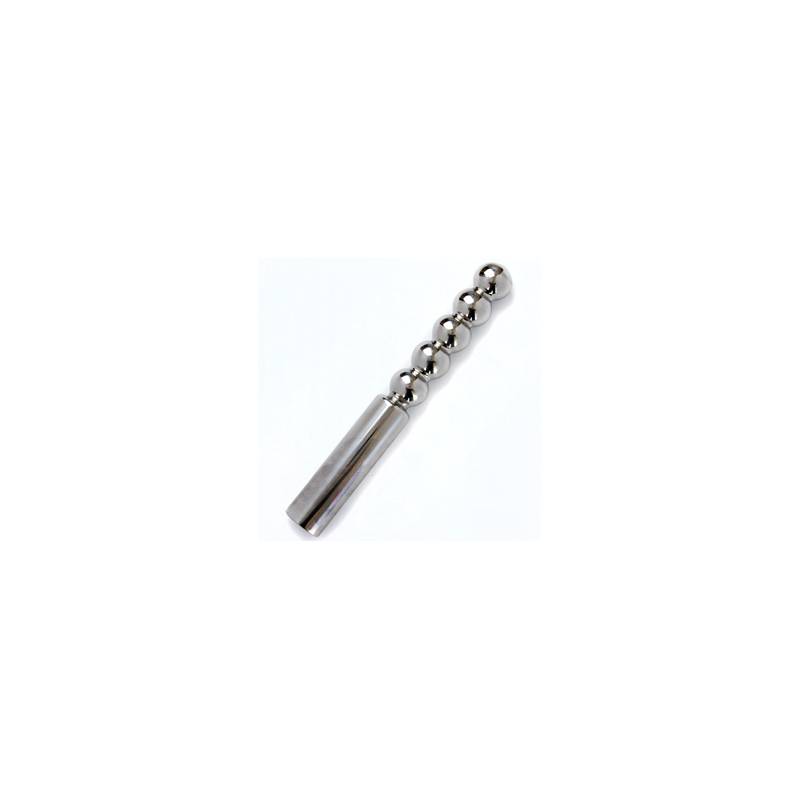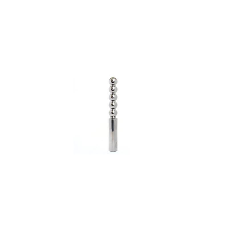 Consolador fabricado íntegramente en aluminio, compuesto por 5 esferas de 30mm de diámetro (diámetro entre las esferas: 1,8cm) y terminado con un mango cilíndrico también de 30mm de diámetro.