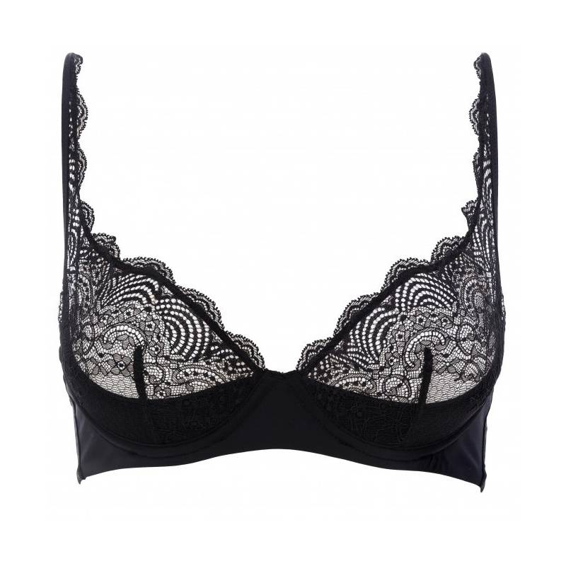 Soutien gorge en lycra et dentelle quart cup noir.