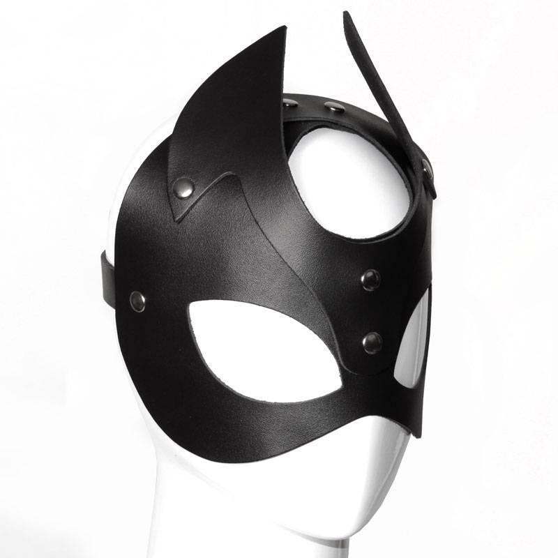 Máscara de cuero remachado de buena calidad, ajustable y de diseño.