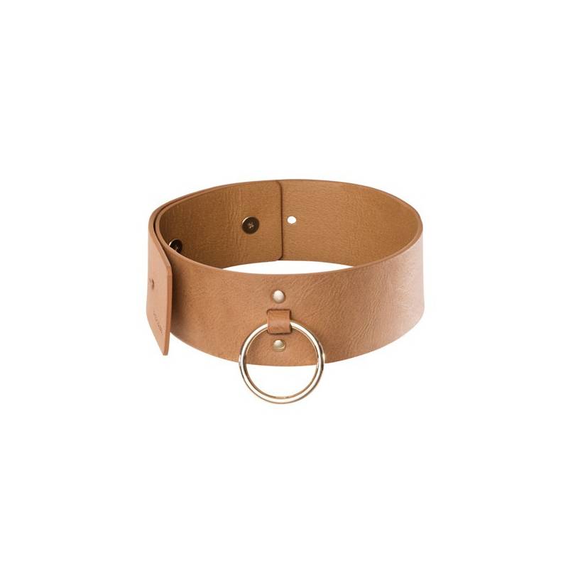Collier large MAZE de Bijoux Indiscrets, avec anneau métal. Laisse partie chaîne métal dorée, dragonne en polyuréthane 100% végan. Un mousqueton discret et classe permet d'accrocher la laisse au collier ou d'utiliser le collier seul.