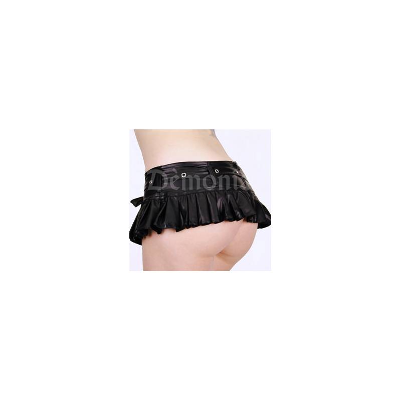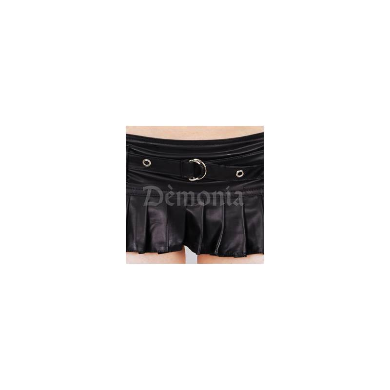 Minifalda pequeña con pliegues en la parte inferior, cremallera entera en la espalda, 6 trabillas y cinturón que pasa por 2 anillas.