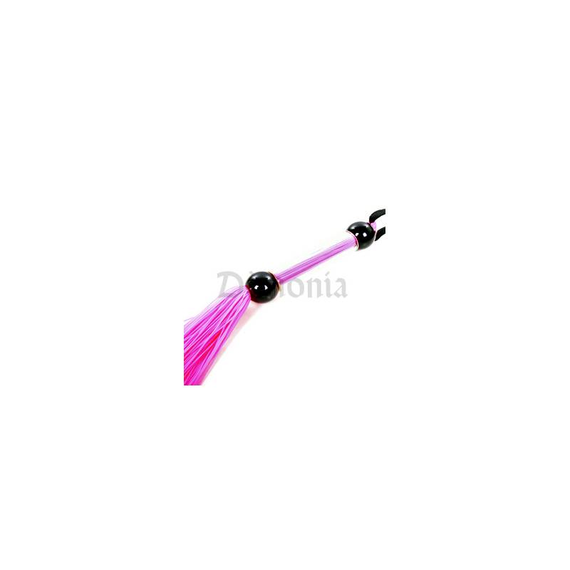 Vencejo de látex rosa fluorescente con cien tirantes finos y un dragón.