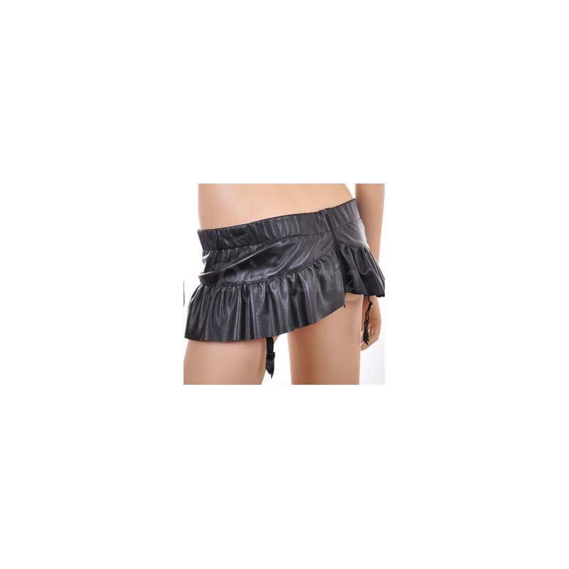 Mini falda en una hermosa imitación de cuero ligeramente acampanada con volantes en la parte inferior y la cintura montada en una banda elástica.