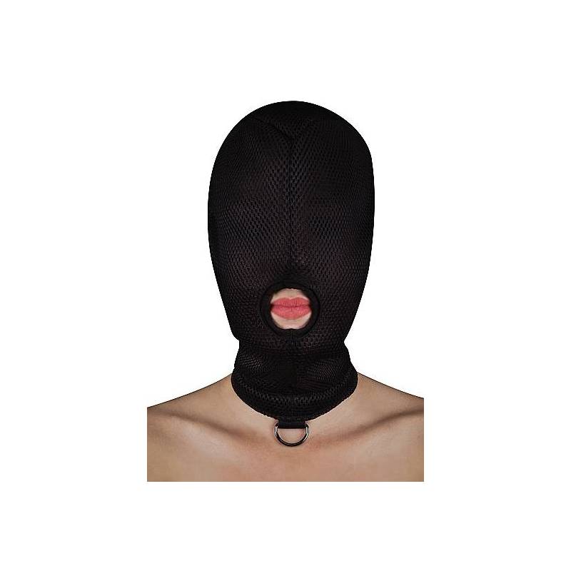Pasamontañas cegador, sólo se ve lo mínimo, con un orificio a la altura de la boca para respirar.