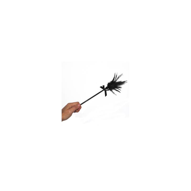 Pequeña y manejable pluma negra con mango de plástico ligeramente flexible. En el extremo del mango hay plumas de diferentes tamaños con las que puedes tocar sutilmente a tu pareja como desees.
