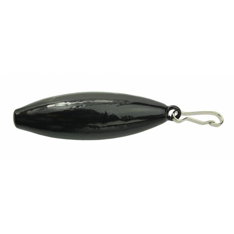 Peso metálico de Spartacus, recubierto de plástico negro, conectado a un pequeño mosquetón.