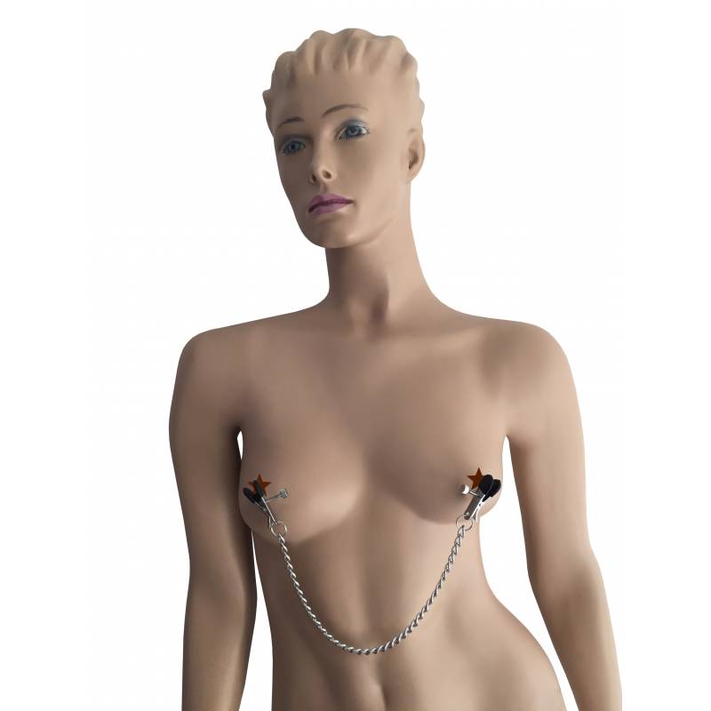Pinces à seins larges et réglables reliées par une belle chaine en acier.