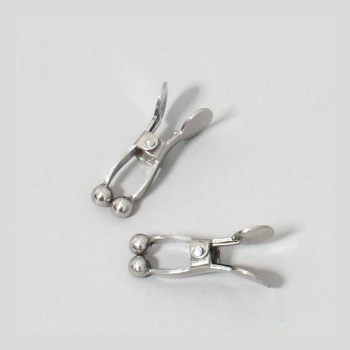 Lujosas pinzas de acero inoxidable diseñadas para un apretón deliciosamente doloroso gracias a sus dos bolas en el extremo.