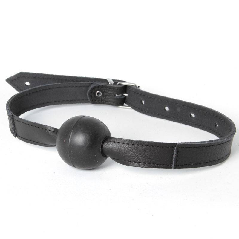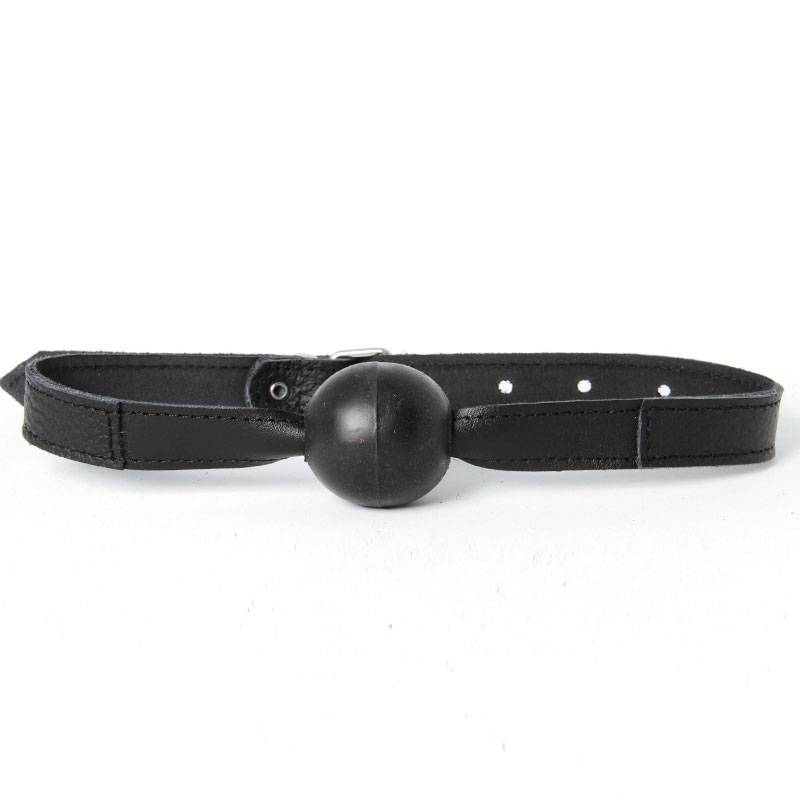 Mordaza con bola muy bonita con correas de cuero suave y bola de silicona completa que es a la vez suave y compacta.