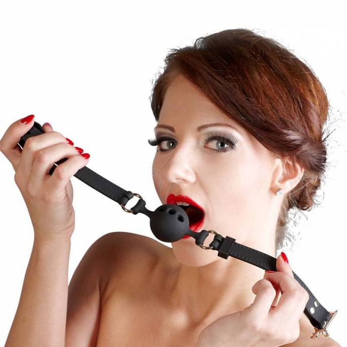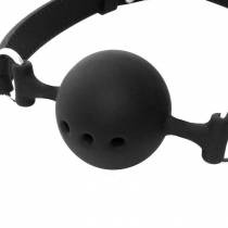 Mordaza de bola totalmente de silicona con hebilla metálica.