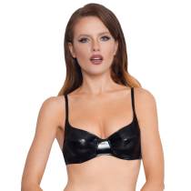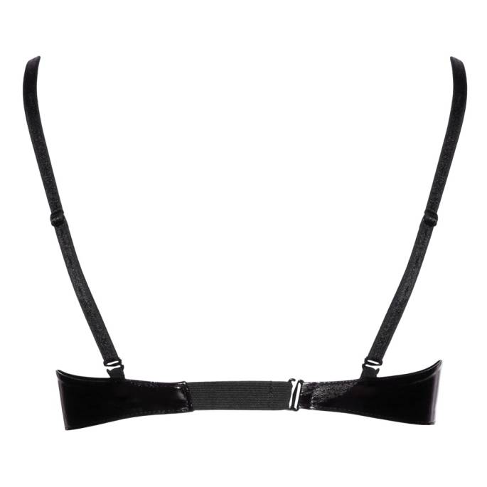 Soutien gorge avec les bretelles en ruban élastique réglable, fermé derrière par un crochet et une baleine sous chaque sein.