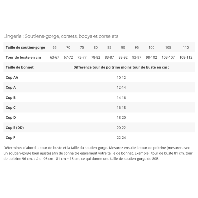 Mesure sous la poitrine : 76 - 78 cm