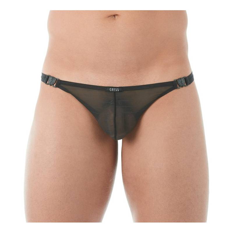 Le string "SUSPENDER" est un string pour homme, transparent, ultra sexy réalisé dans un tissu rayé très fin et soyeux.
