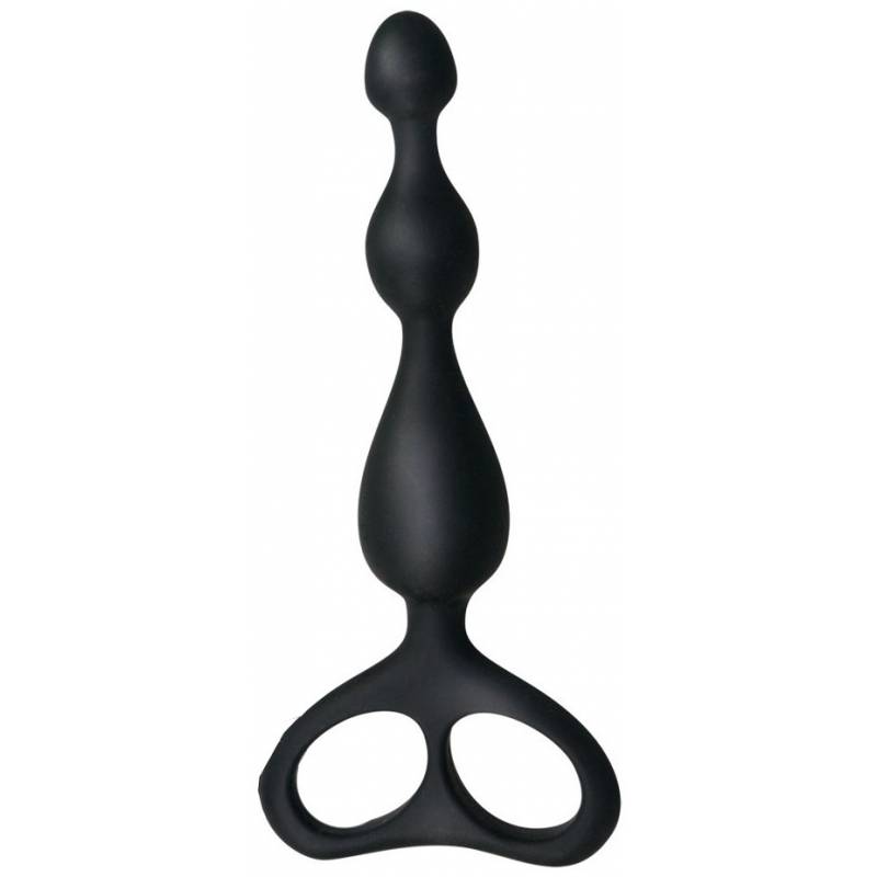 Cadena anal negra con cuentas estimulantes de diferentes tamaños.