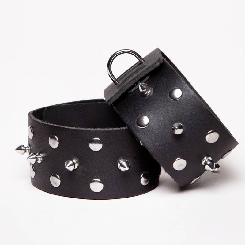 Cuero grueso y duro para estos tobillos salpicados de clavos planos y clavos en punta.