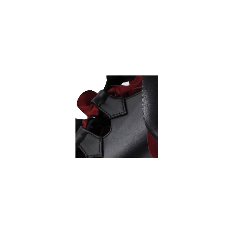 Una elegante cinta burdeos hace las veces de cordón y adorna el zapato a la perfección.